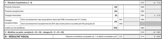 Votre résultat fiscal (bénéfice ou déficit) est reporté dans la case appropriée :