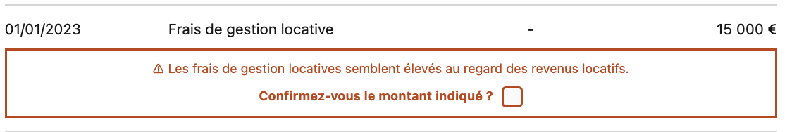 Dans le cas des frais de gestion locative, vous pouvez retrouver le message d'erreur suivant :