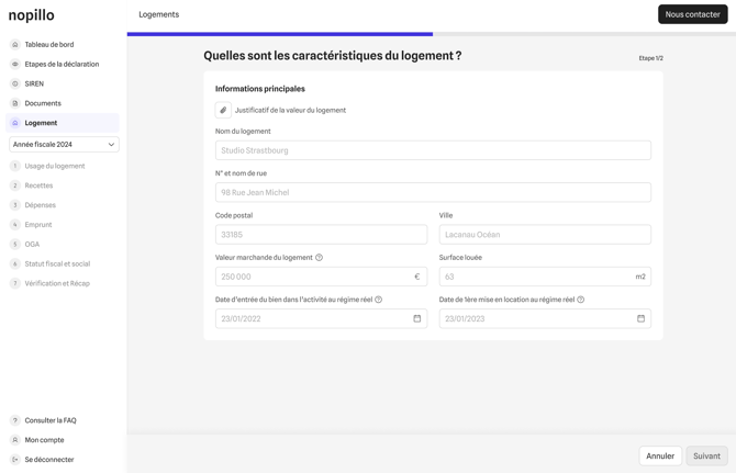 L’ajout d’un logement est la deuxième étape clé dans Nopillo (juste après le SIREN).