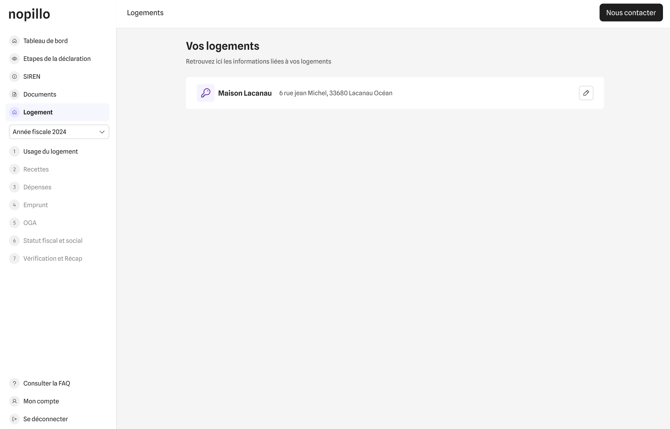 Tant que vous n’avez pas soumis votre liasse fiscale Ă  Nopillo, vous pouvez  modifier les informations de votre logement.