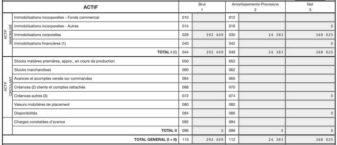 - Sur la ligne âConstructionsâ (cases 430 Ă 436), on retrouve une partie qui donne lieu Ă amortissement selon les normes fiscales en vigueur.