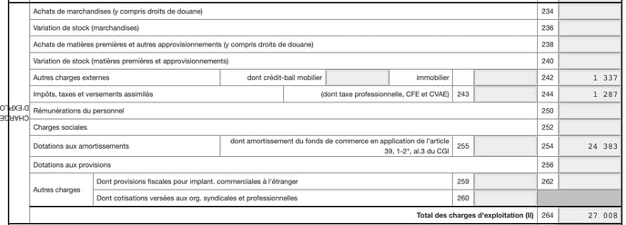 La case 270 reprend le calcul du résultat fiscal aprÚs déduction de toutes les charges citées précédemment (cases 242, 244, et 254).