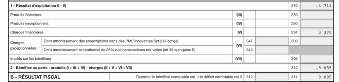 Votre résultat fiscal (bénéfice ou déficit selon le cas) est reporté dans la case appropriée :