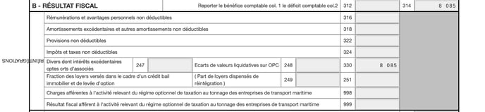 Le rĂ©sultat fiscal âintermĂ©diaireâ figure en case 314.