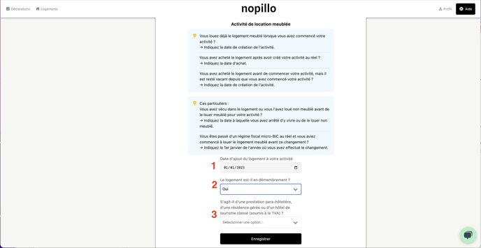 (3) : S'agit-il d'une prestation para-hôtelière, d'une résidence gérée ou d'un hôtel de tourisme classé (soumis à la TVA) ?