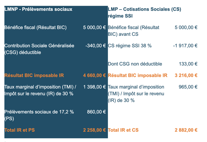 Ainsi le coût social et fiscal du LMNP = 47,5% et du LMP 57% sur le bénéfice imposable