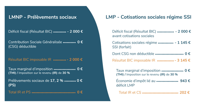 👉 Le statut LMP a des conséquences sur les règles de report des déficits fiscaux, voir ici.
