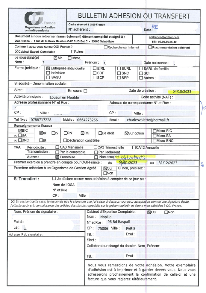 Nous vous recommandons de contacter directement par mail votre OGA, l'OGA partenaire de nopillo est OGI France : ogifrance@ogifrance.fr.